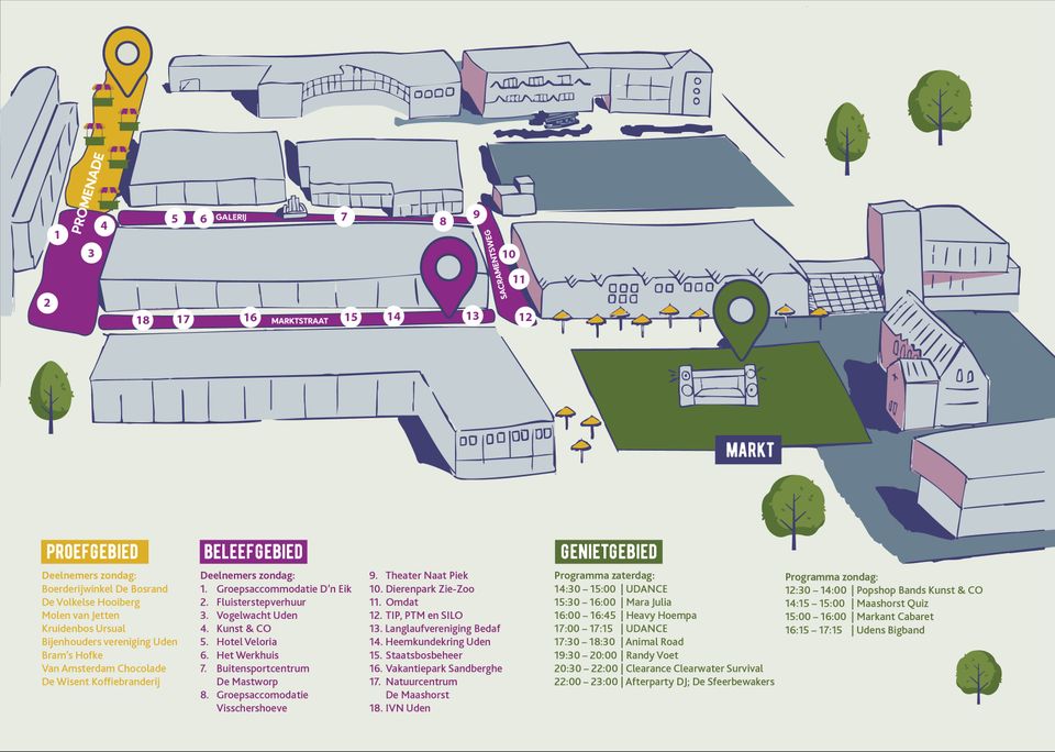 Tijdens dit bruisende koopweekend kunnen bezoekers op een interactieve manier kennismaken met het brede aanbod aan toerisme en recreatie in Maashorst. Proeven van streekproducten? Deelnemen aan activiteiten en workshops? Of gewoon genieten van het Maashorst-gevoel? Het kan allemaal, in 3 speciaal daarvoor ingerichte gebieden in Uden Centrum.