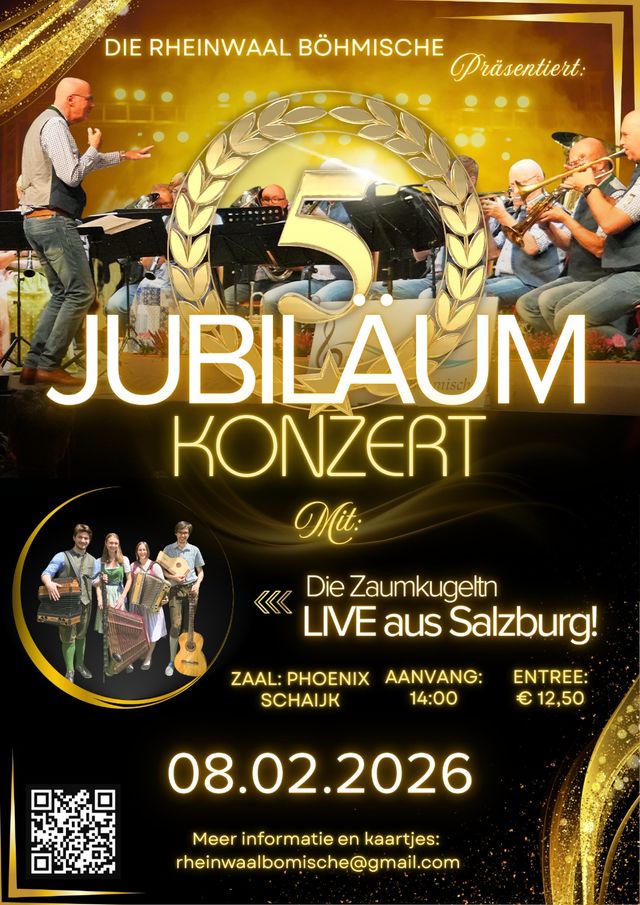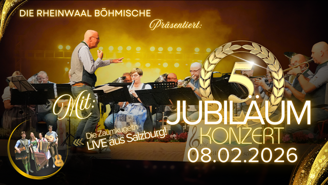 Op zondag 8 februari 2026 vieren wij het 5-jarig jubileum van Die RheinWaal Böhmische – vijf jaren vol muziek, vriendschap en bijzondere optredens.