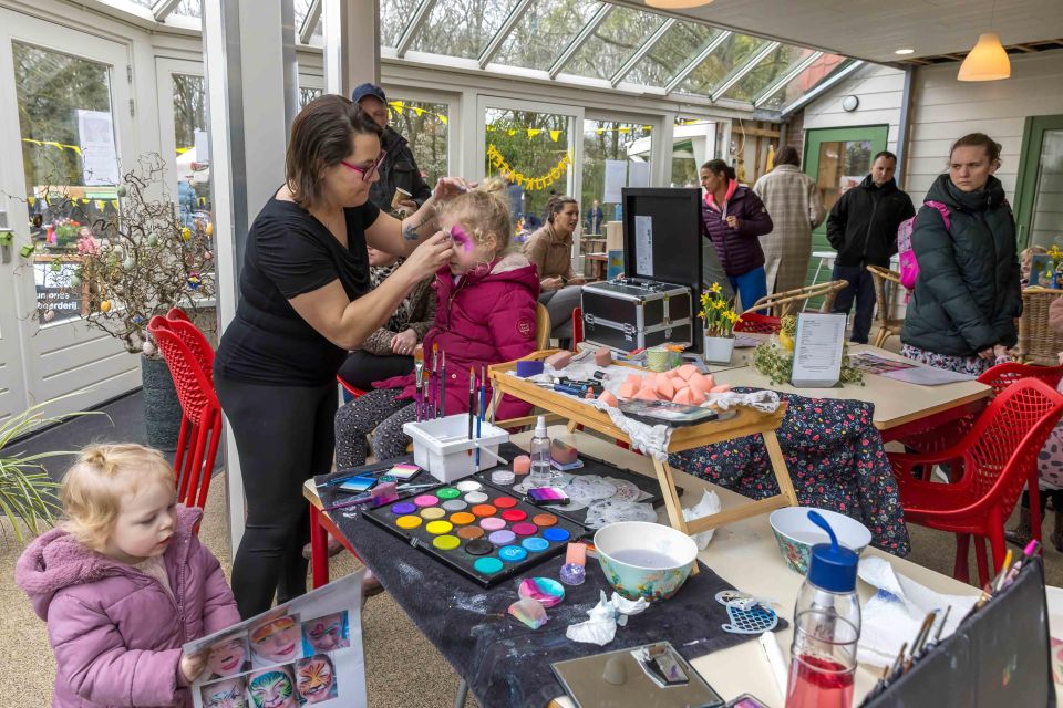 De kinderboerderij staat nu vol jonge dieren. De dwerggeiten zijn slechts enkele weken oud en dartelen in de wei, terwijl konijnen, kippen, schapen en volwassen geiten van dichtbij te bewonderen zijn. Voor kinderen is er volop te ontdekken: paaseieren zoeken, kuikentjes knuffelen, touwtrekken tegen de paashaas, en leuke spelletjes zoals eendjes vissen of het aantal eieren raden. Ook knutselactiviteiten en een paaspuzzel zorgen voor creatieve uitdagingen. En natuurlijk mag een springkussen niet ontbreken!
